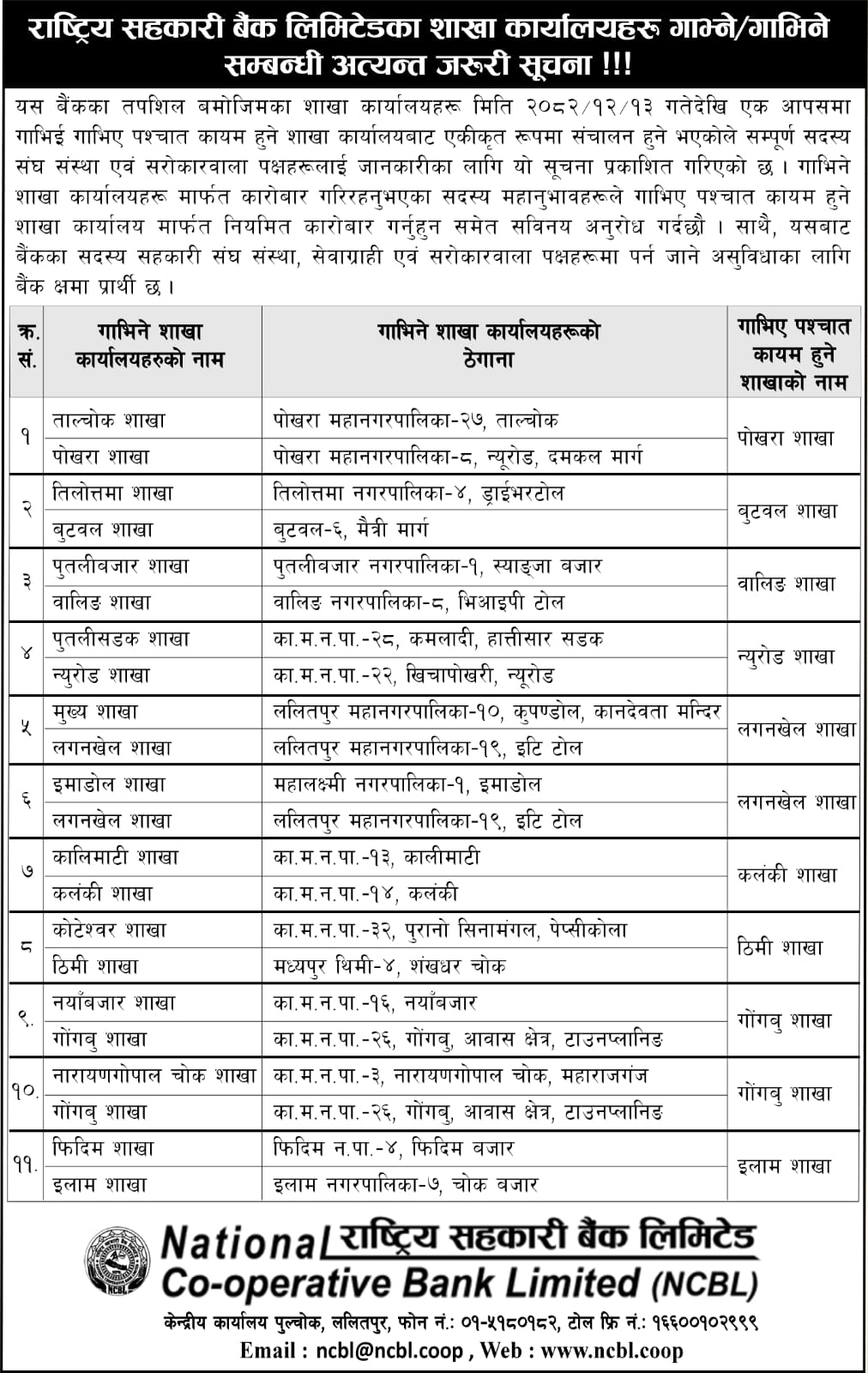 यस बैंकको शाखा कार्यालयहरू गाभ्ने/गाभिने सम्बन्धी अत्यन्त जरुरी सूचना !!!